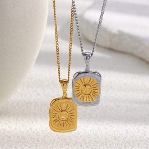 Винтажное колье-подвеска с солнцем, цепочка-подвеска в геометрическом стиле, позолоченное 18-каратным золотом PVD, из нержавеющей стали