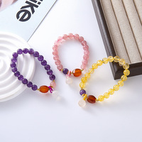 สร้อยข้อมือคริสตัลสตรอเบอร์รี่แบบมินิมอลสร้อยข้อมือดอกบัวซิทรินอเมทิสต์สร้อยข้อมือหินอัญมณีธรรมชาติ